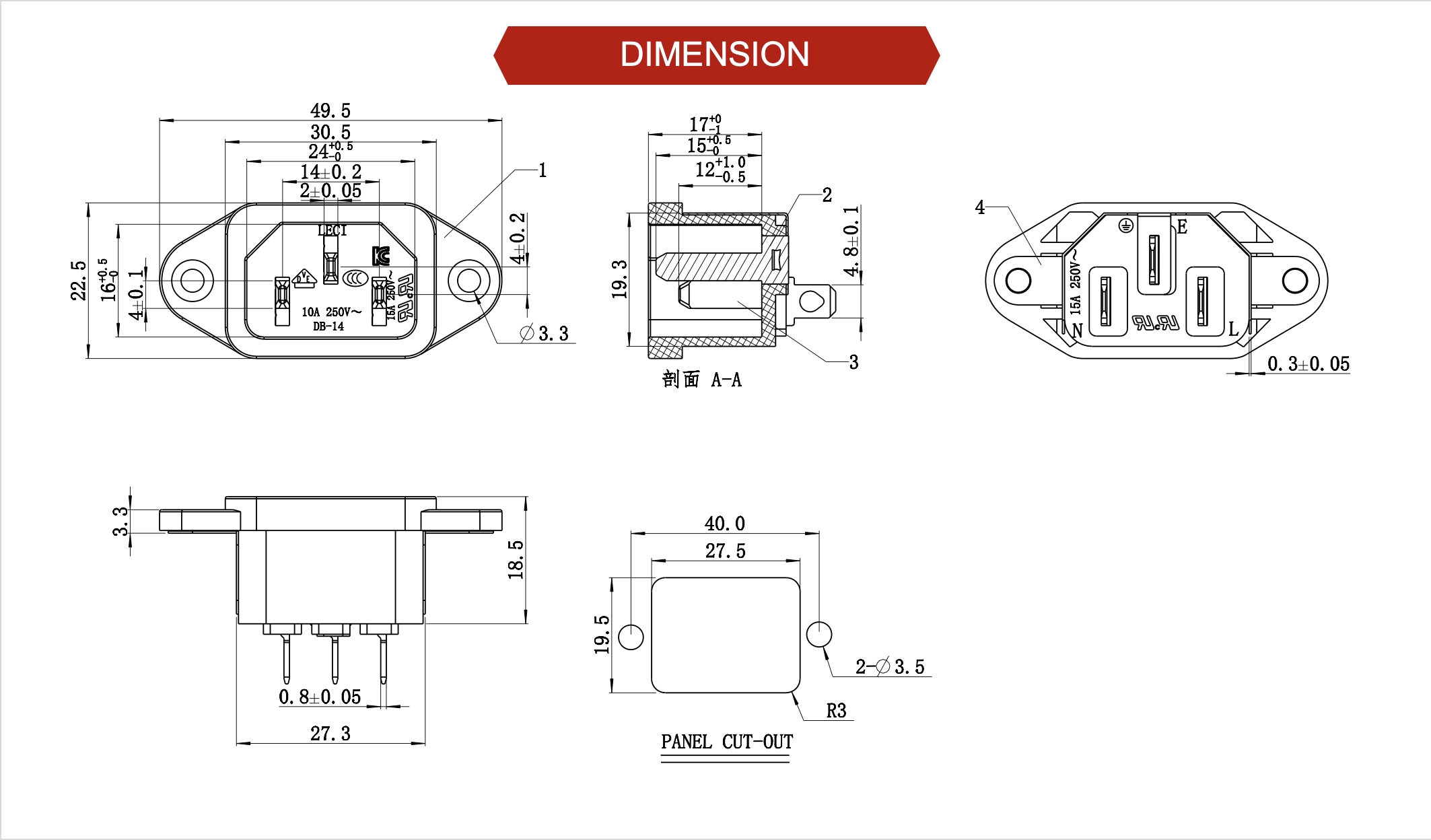 端子塑膠之間3750VAC (50-60Hz) 1 min