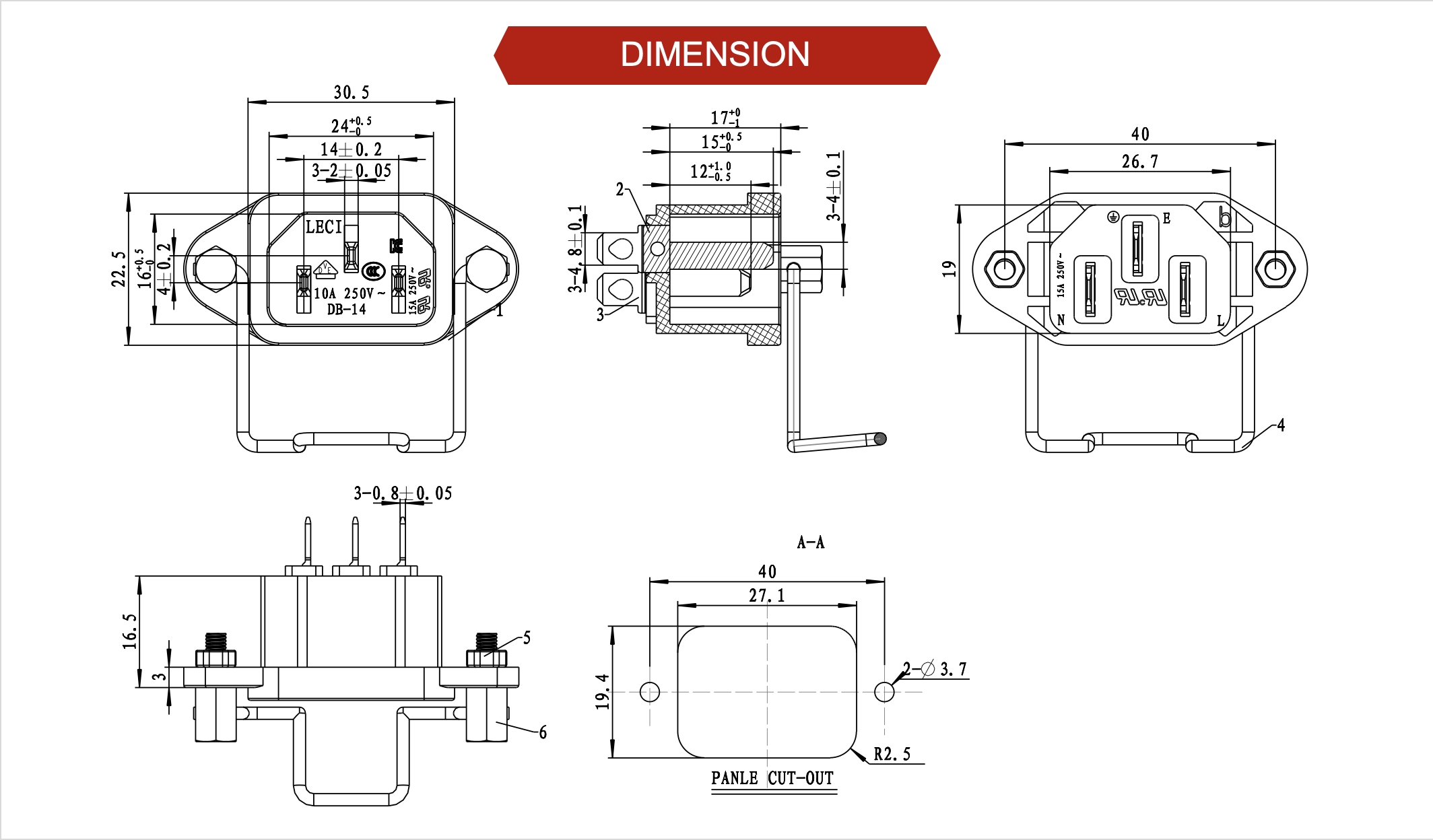端子塑膠之間3750VAC (50-60Hz) 1 min