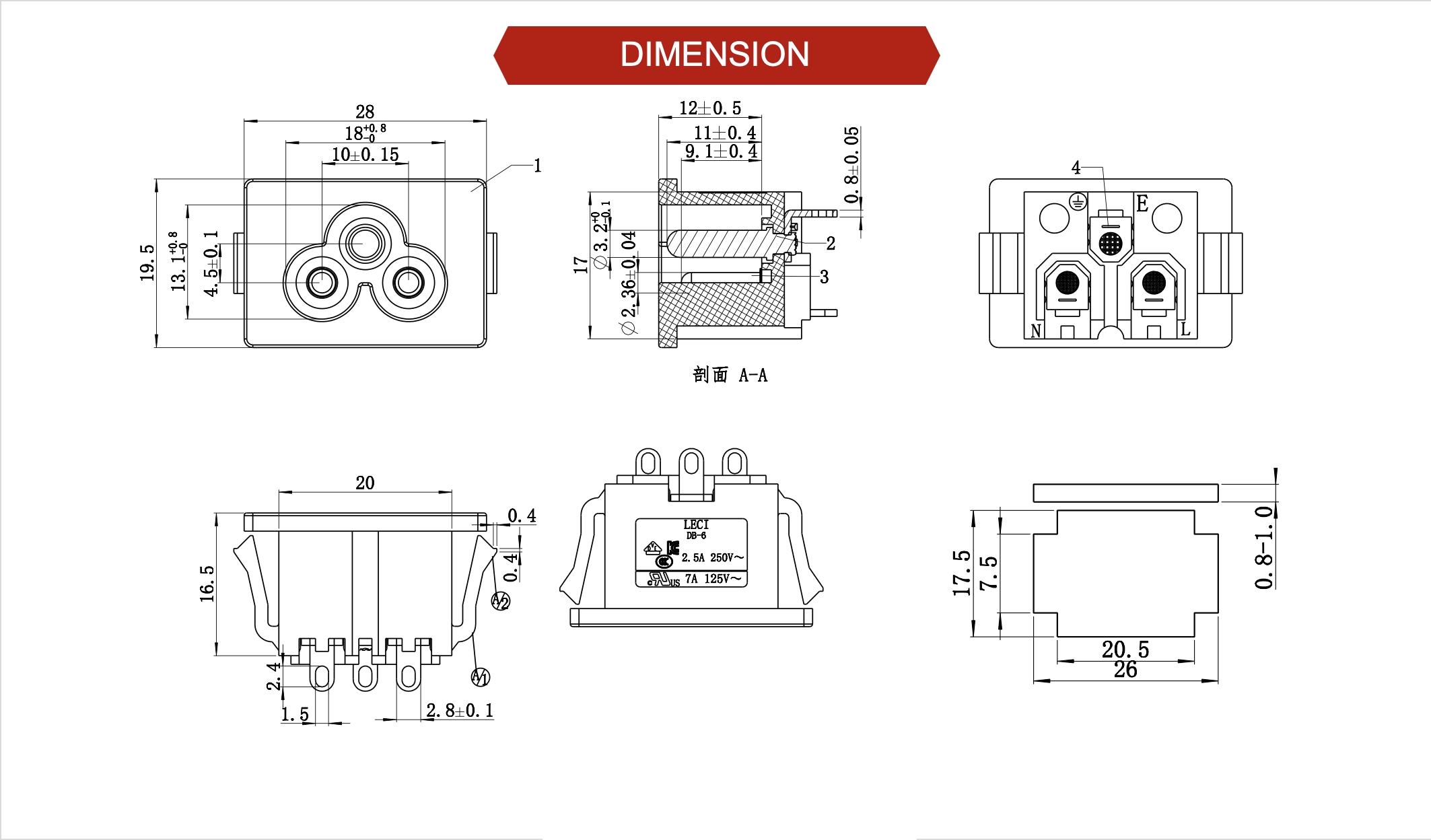 額定值:7A125V / 2.5A250V