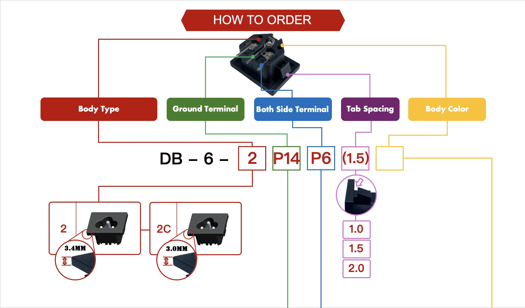 端子塑膠之間3750VAC (50-60Hz) 1 min