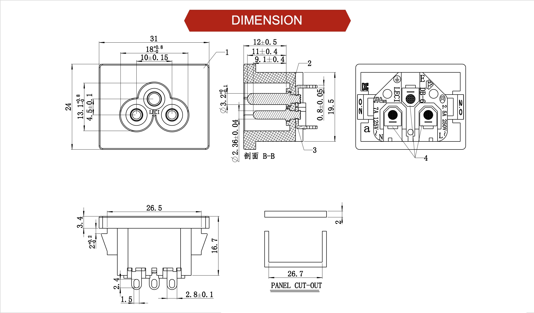 額定值:7A125V / 2.5A250V