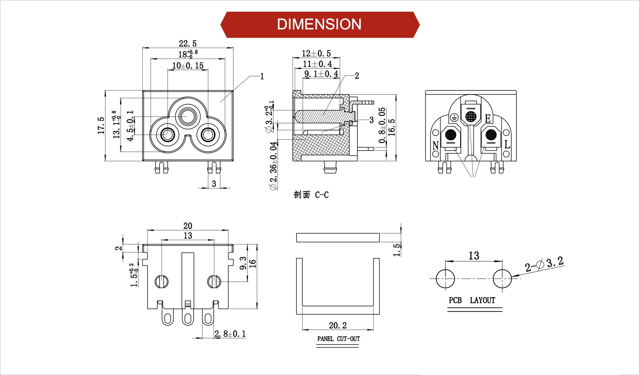 端子塑膠之間3750VAC (50-60Hz) 1 min