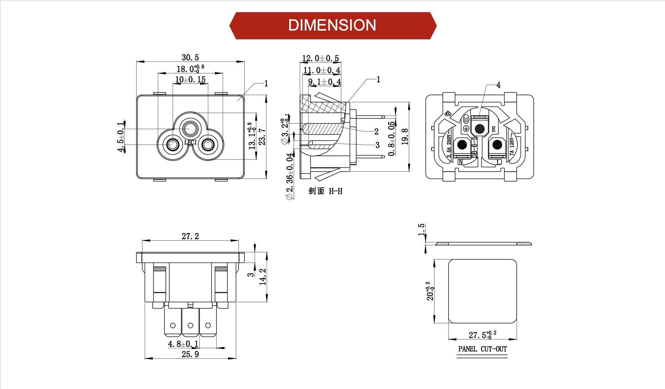 端子塑膠之間3750VAC (50-60Hz) 1 min
