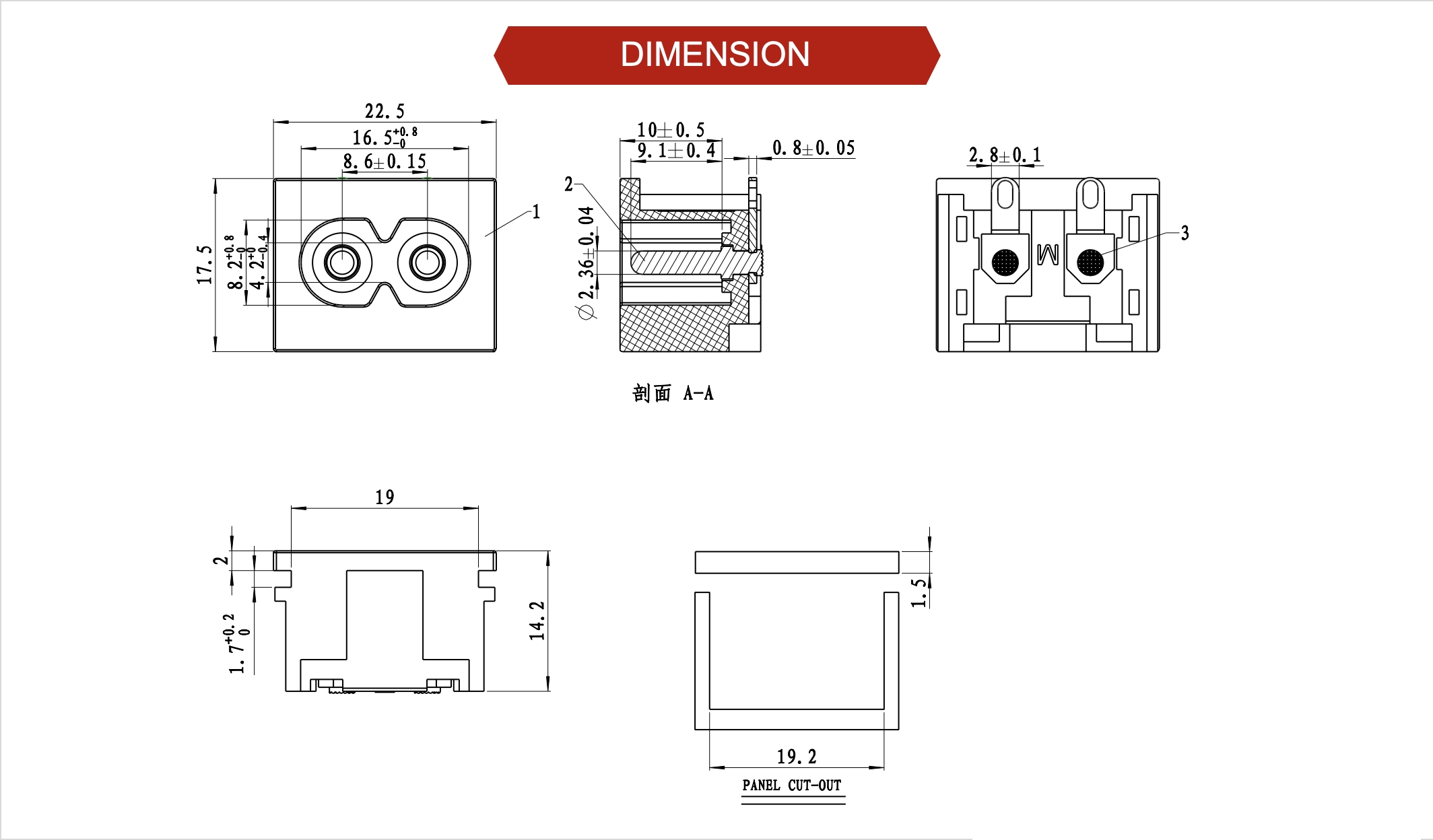 端子塑膠之間3750VAC (50-60Hz) 1 min