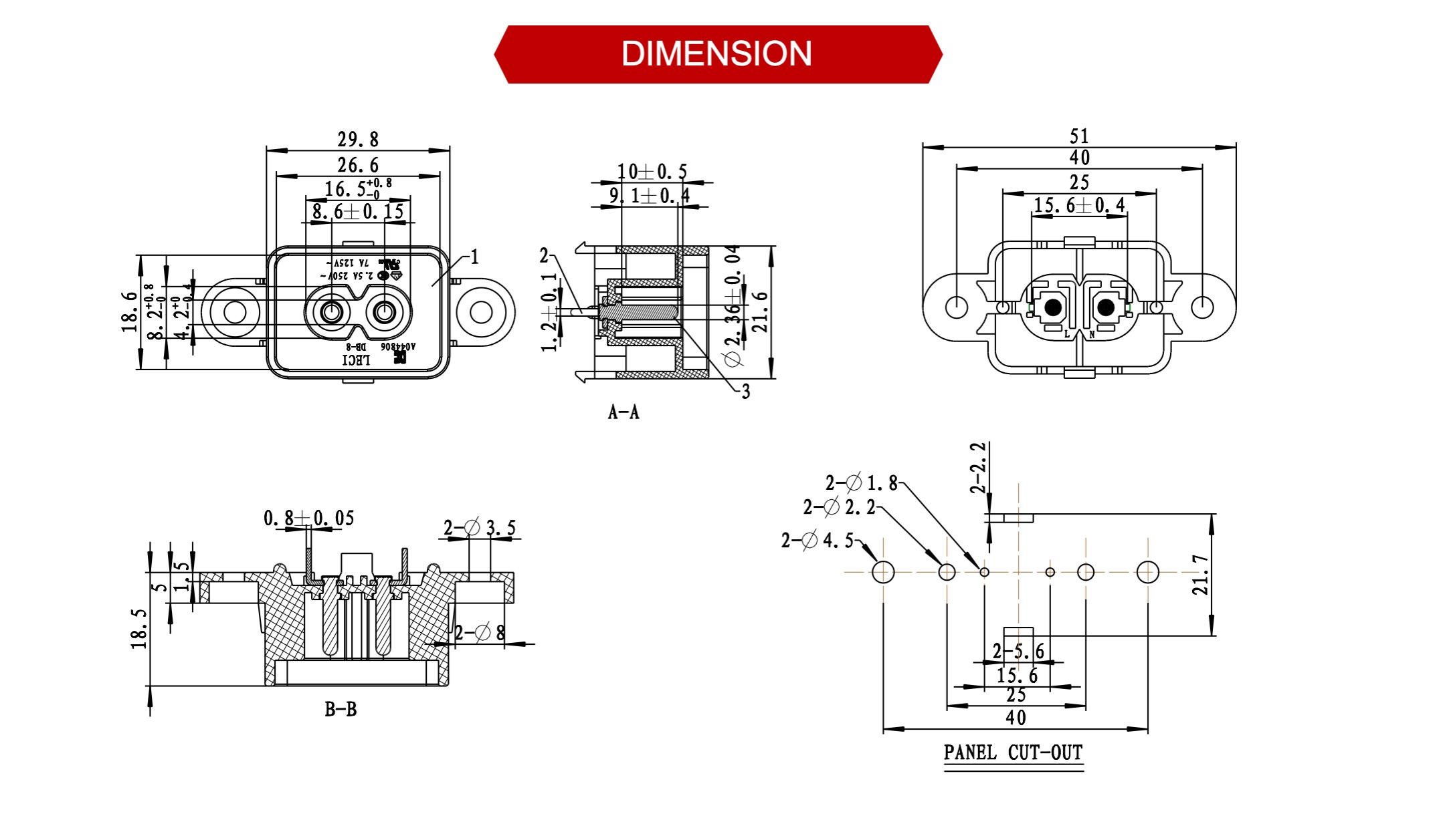 端子塑膠之間3750VAC (50-60Hz) 1 min