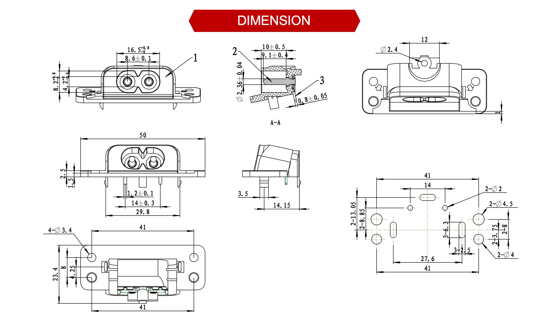 端子塑膠之間3750VAC (50-60Hz) 1 min