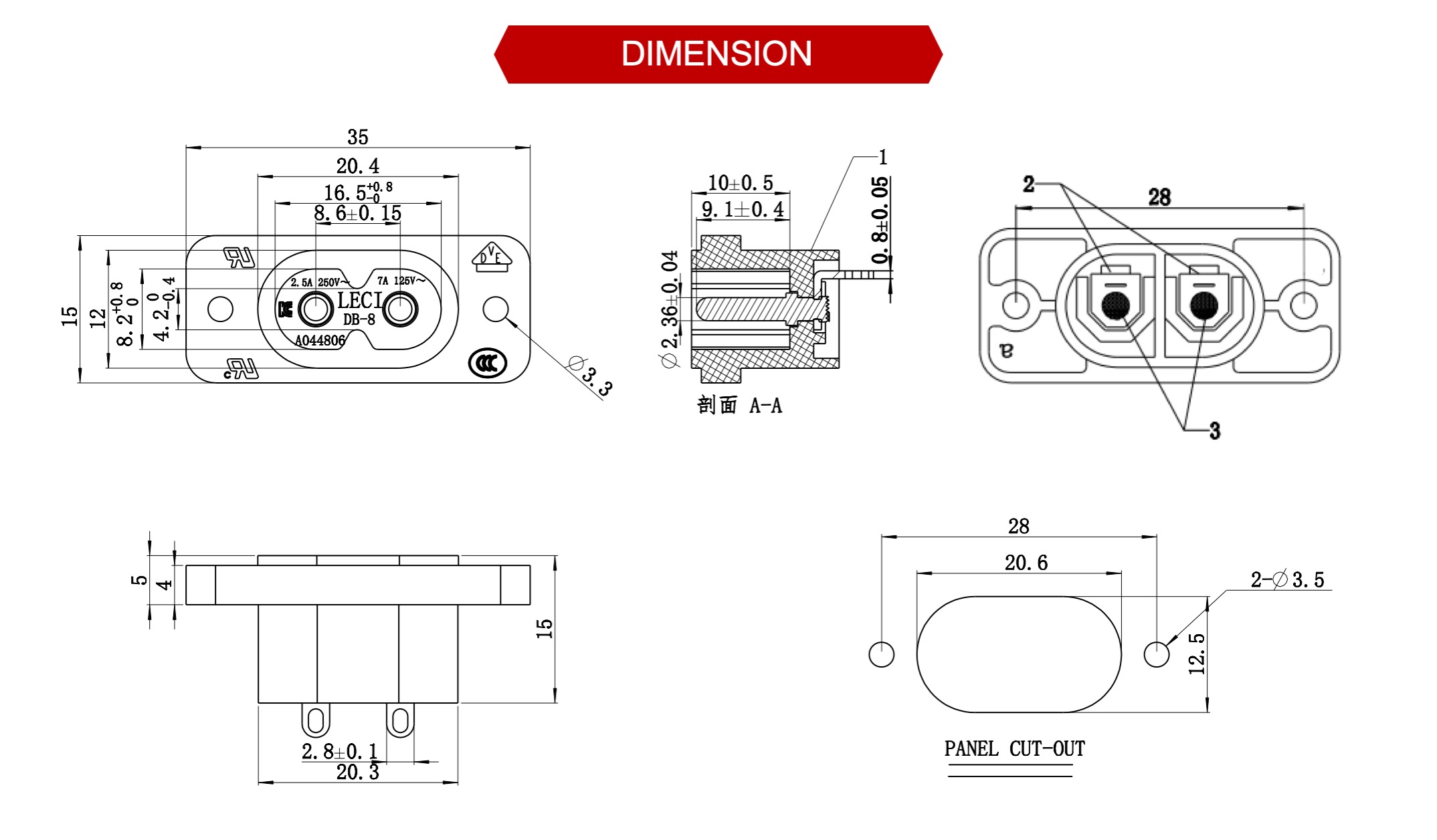 額定值:7A125V / 2.5A250V