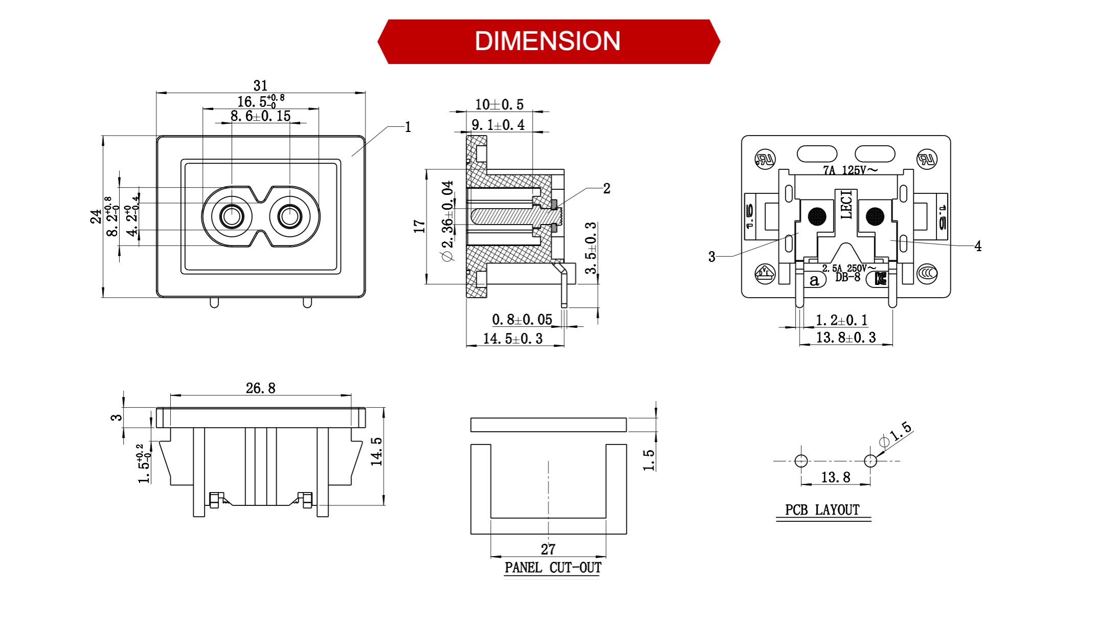 額定值:7A125V / 2.5A250V