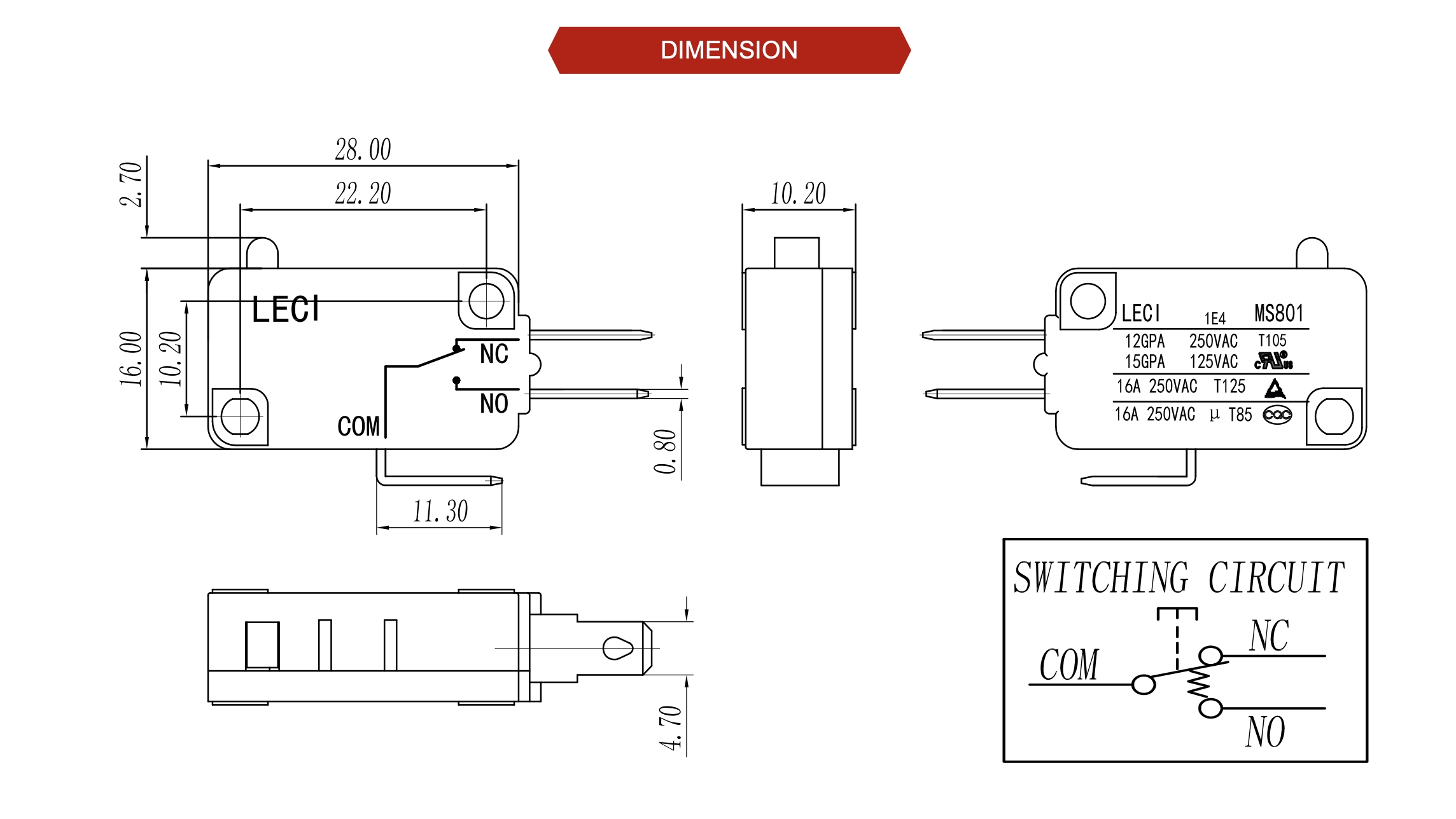 額定值:16A250V 12A250V 15A125V
