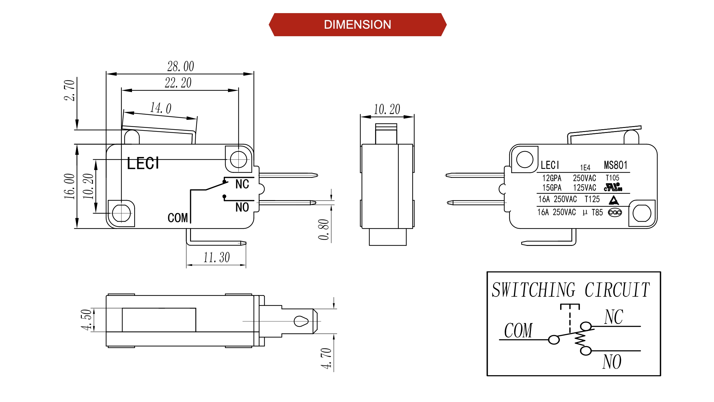額定值:16A250V 12A250V 15A125V