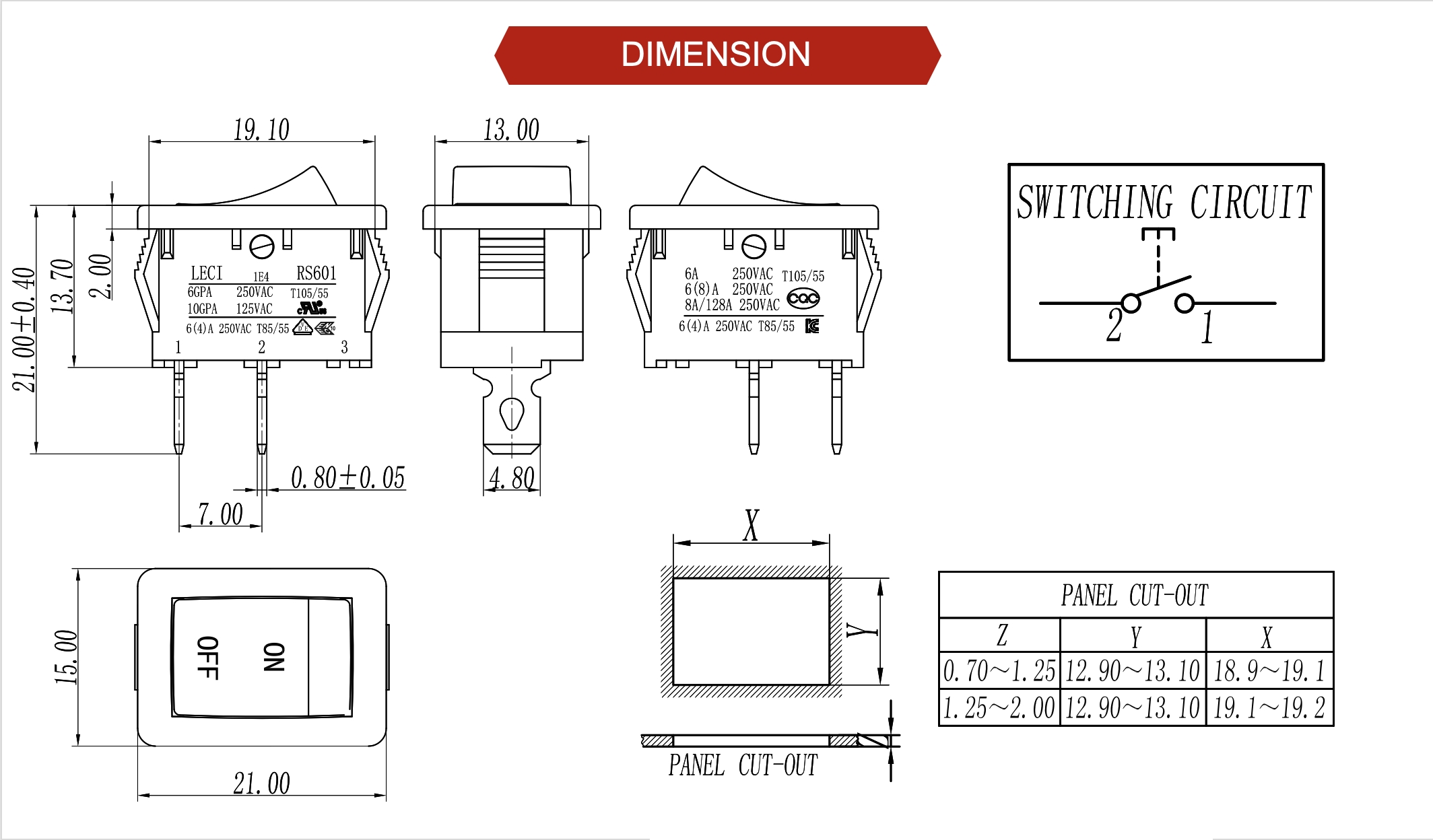 高電流版額定值:16A125V 13(7)A250V 10A250V 8/128A250V