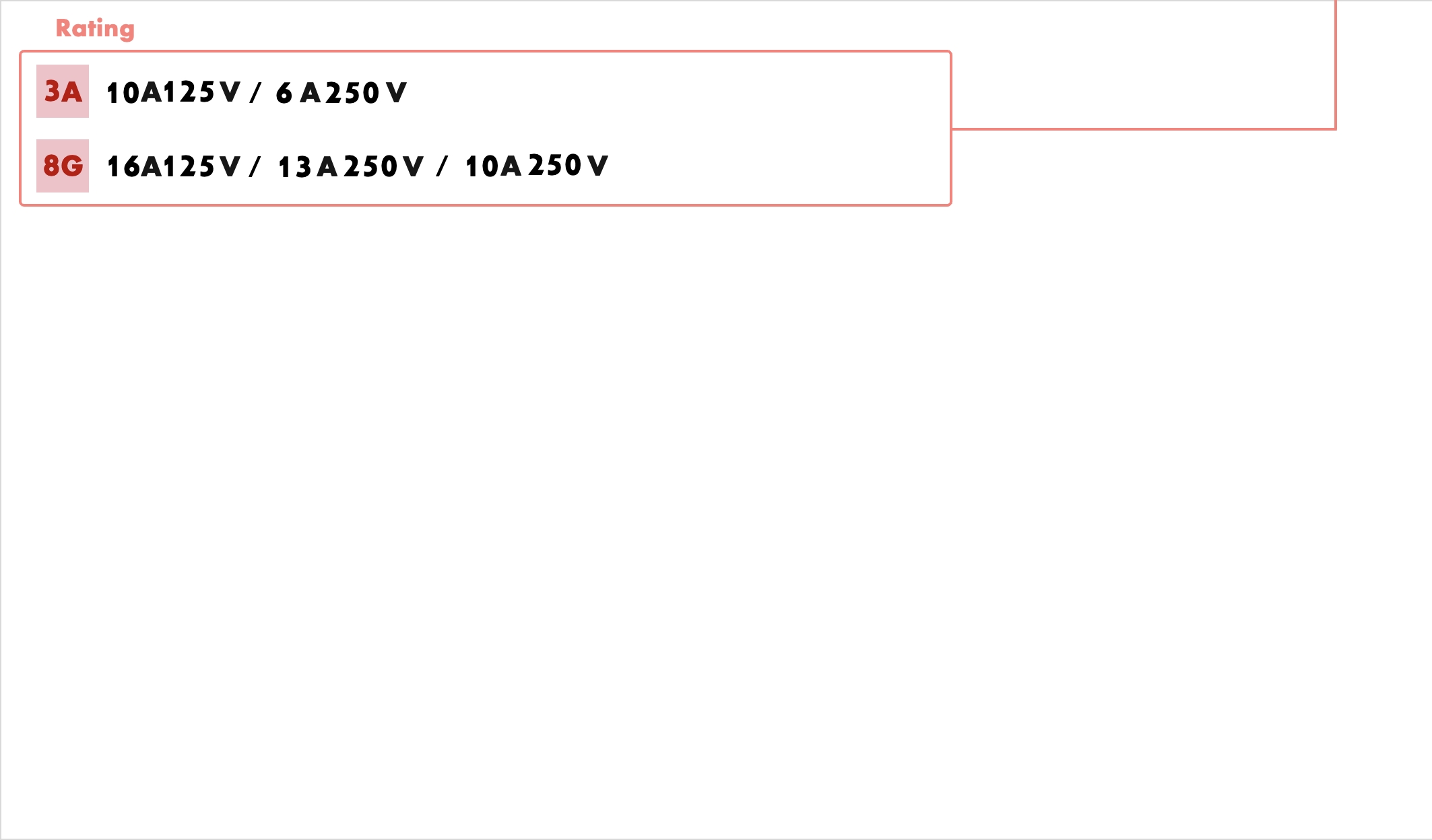 高電流版額定值:16A125V 13(7)A250V 10A250V 8/128A250V
