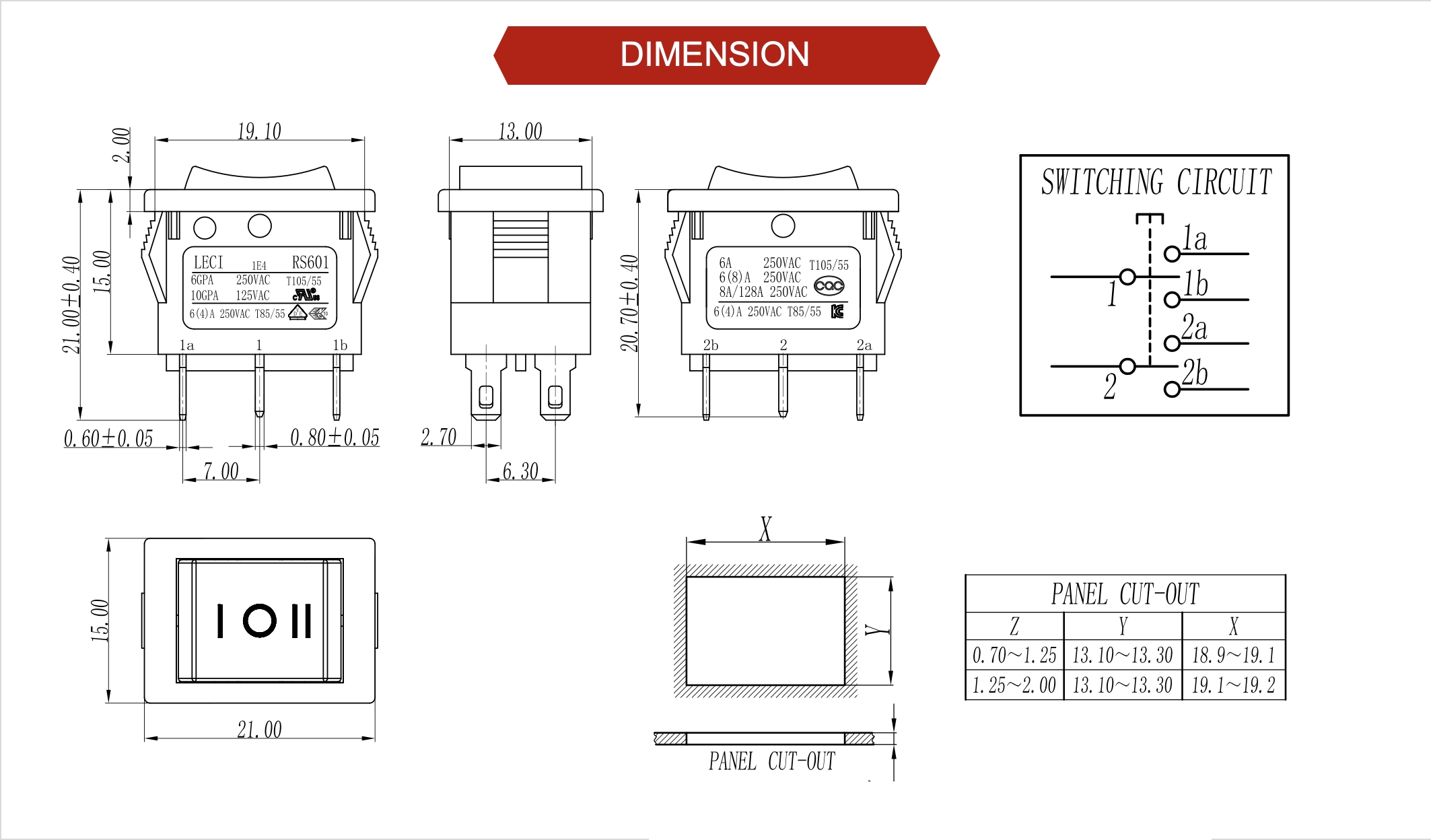 高電流版額定值:16A125V 13(7)A250V 10A250V 8/128A250V