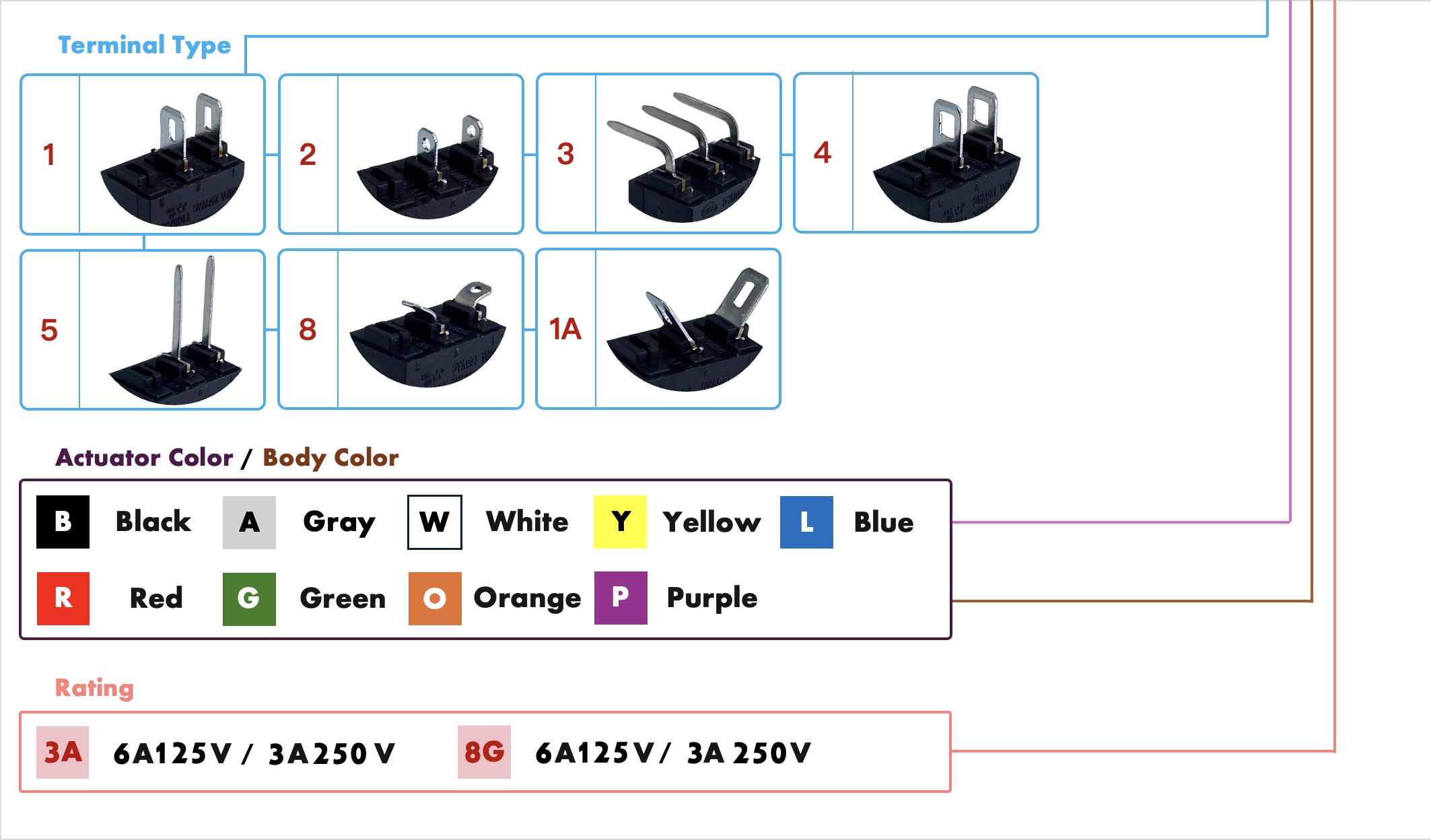 標準版額定值:6A125V 3A250V 3A/40A 250V