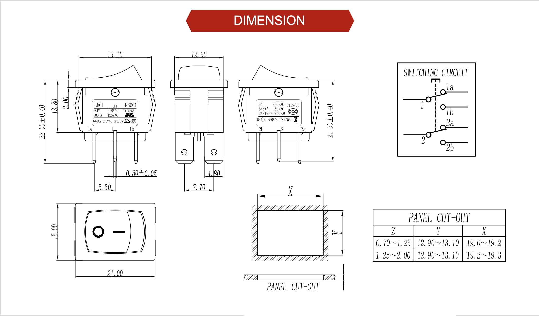 高電流版額定值:16A125V 13(7)A250V 10A250V 8/128A250V