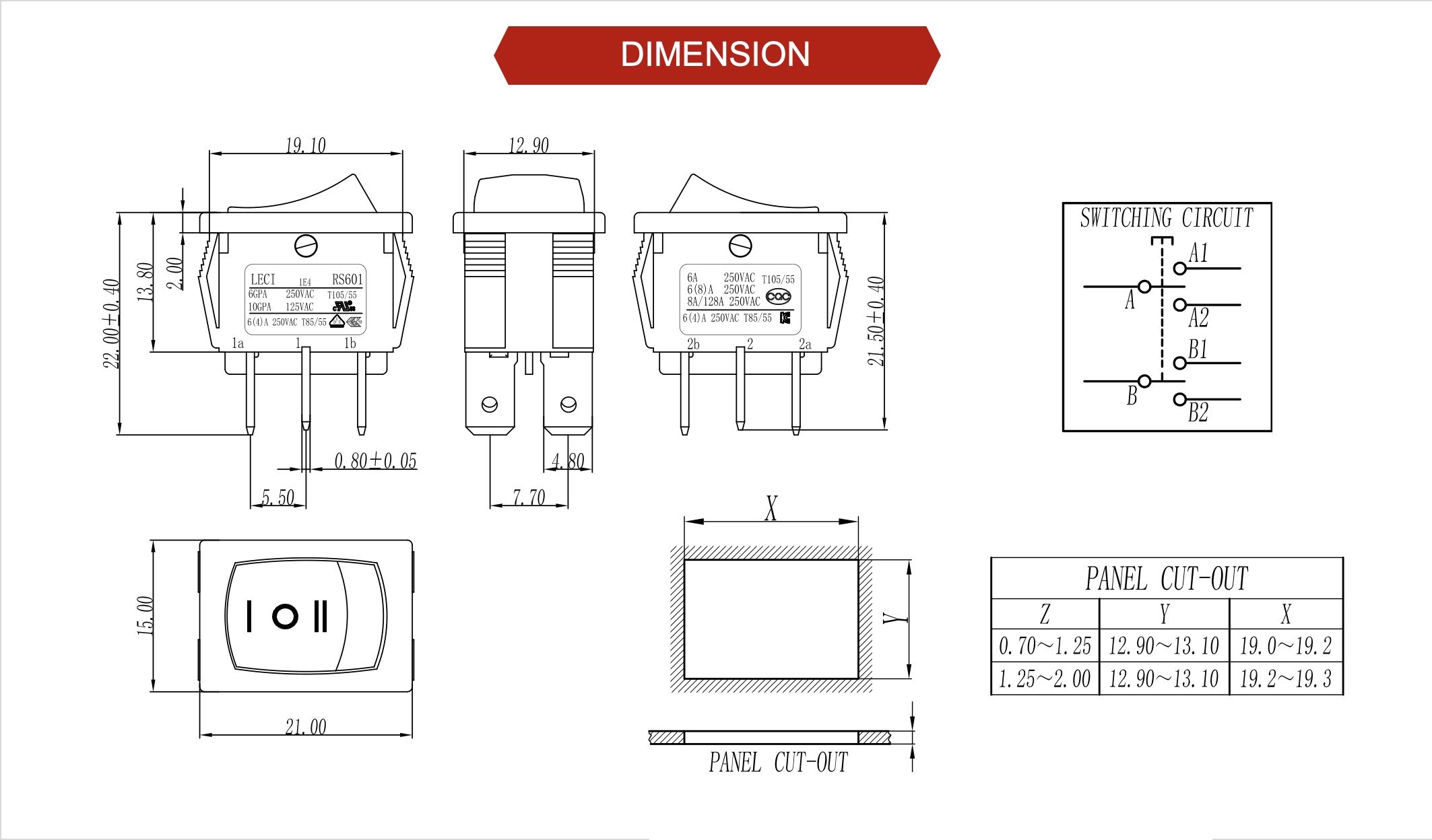 標準版額定值:10A125V 6(8)A250V 6(4)A250V