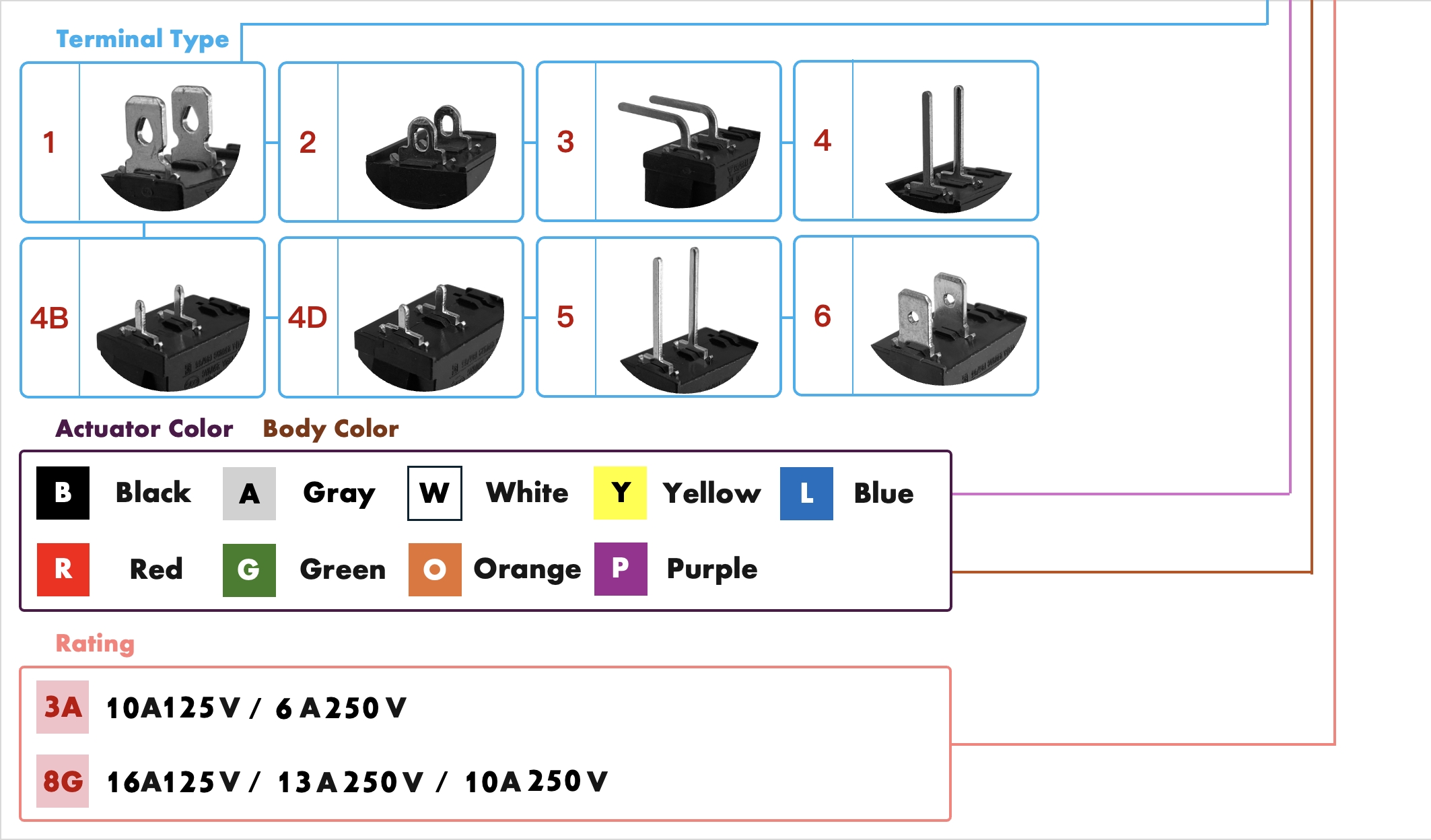 標準版額定值:10A125V 6(8)A250V 6(4)A250V